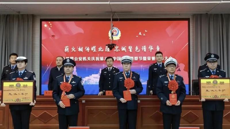 为表彰先进典型、凝聚奋进力量,阿拉善盟公安局召开“薪火相传耀北疆 忠诚警色谱华章” 庆祝第六个中国人民警察节暨荣誉表彰大会,大会对先进集体、优秀民警辅警予以表彰,同时为荣退民警代表、从警十年的民警隆重颁发荣誉纪念章,激励全警将荣誉化为动力,为建设更高水平的平安阿拉善、法治阿拉善贡献力量。