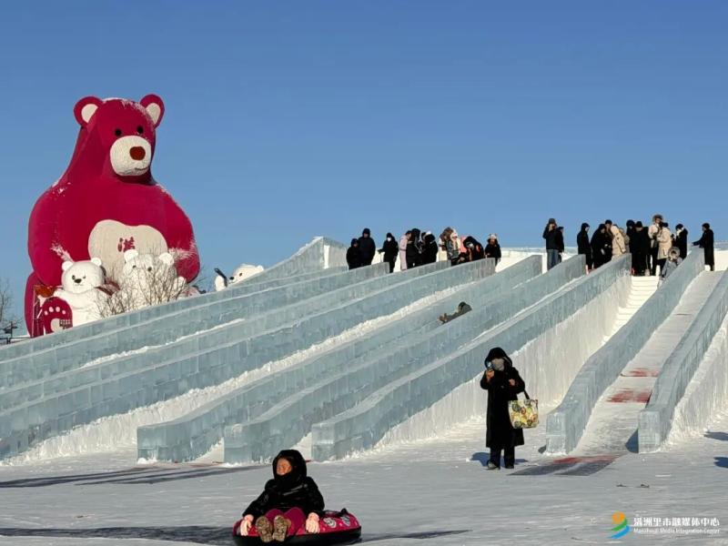 “今天是我第二次来这个冰雪乐园了,玩了滑梯和冰迷宫,迷宫里的趣味表情特别有意思,滑下滑梯的时候‘嗖’的一下窜出去,特别刺激、特别开心。”市民张珈禾的分享满是对互动体验项目的喜爱。园区内,双面互动墙前始终人气爆棚,游客们或与金灿灿的仿真大面包比身高,或在运动姿势挑战墙前摆出活力满满的造型,相机快门声此起彼伏;卡通形象的十二生肖雪雕、“满洲里站”车站场景、称心如意打卡区等点位,成为亲子互动、好友同游的热门选择,大家争相拍照留念,将欢乐瞬间永久定格。