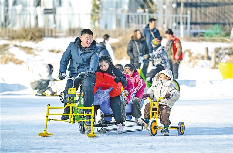 冬日里,呼和浩特南湖冰雪大世界人头攒动,充满欢声笑语。市民游客漫步于银装素裹的园区里,在特色景观与各类娱乐项目中,尽享冰雪狂欢盛宴。草原云·内蒙古新闻网记者 王磊 摄