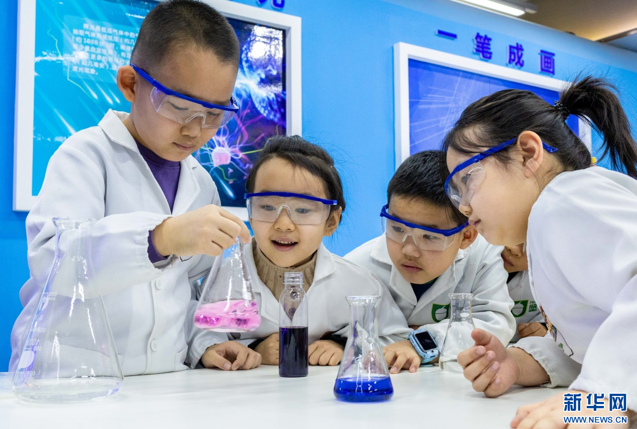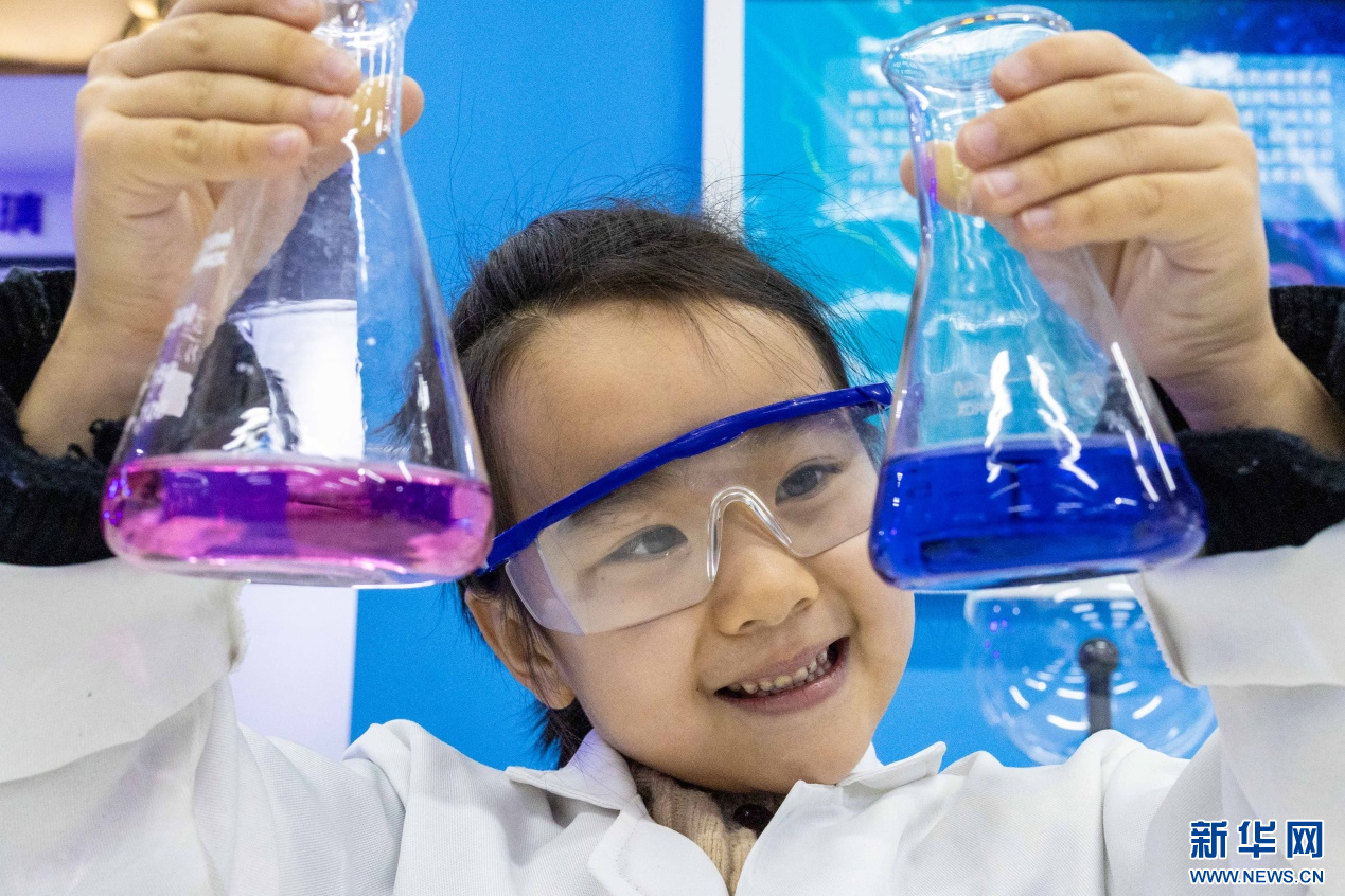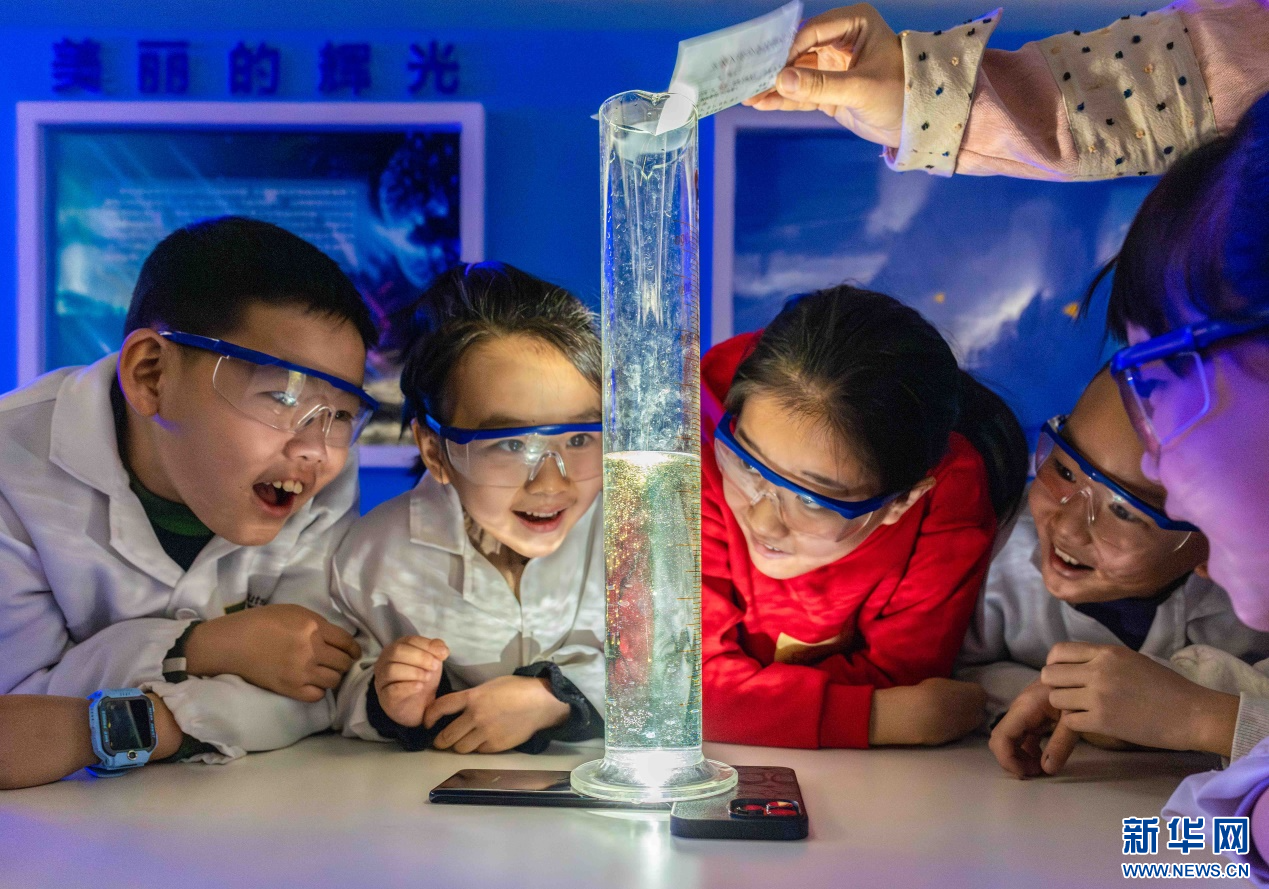 1月22日,孩子们在呼和浩特市玉泉区青少年宫体验趣味科学实验。新华网发(丁根厚 摄)