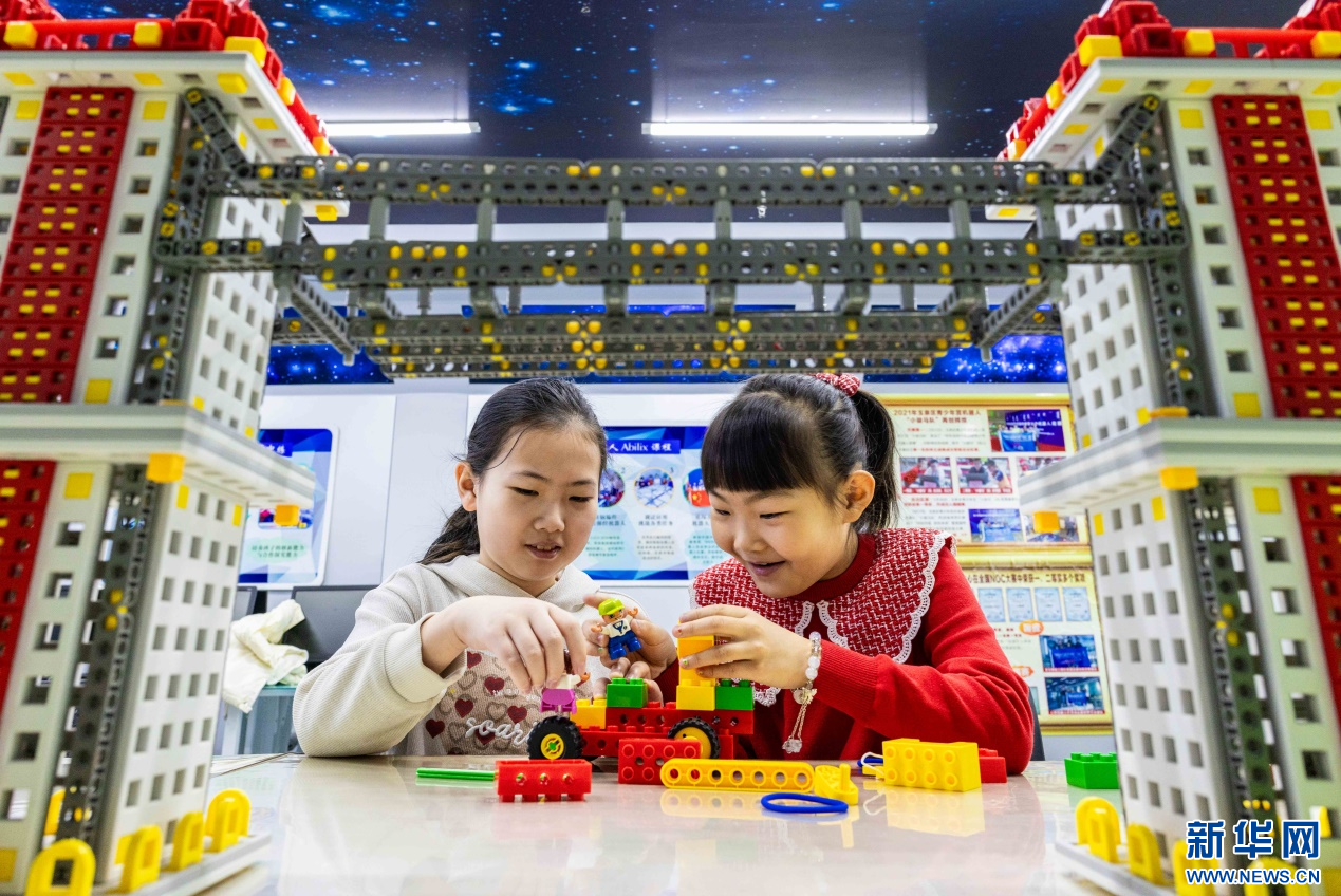 1月22日,孩子们在呼和浩特市玉泉区青少年宫学习机器人搭建。新华网发(丁根厚 摄)