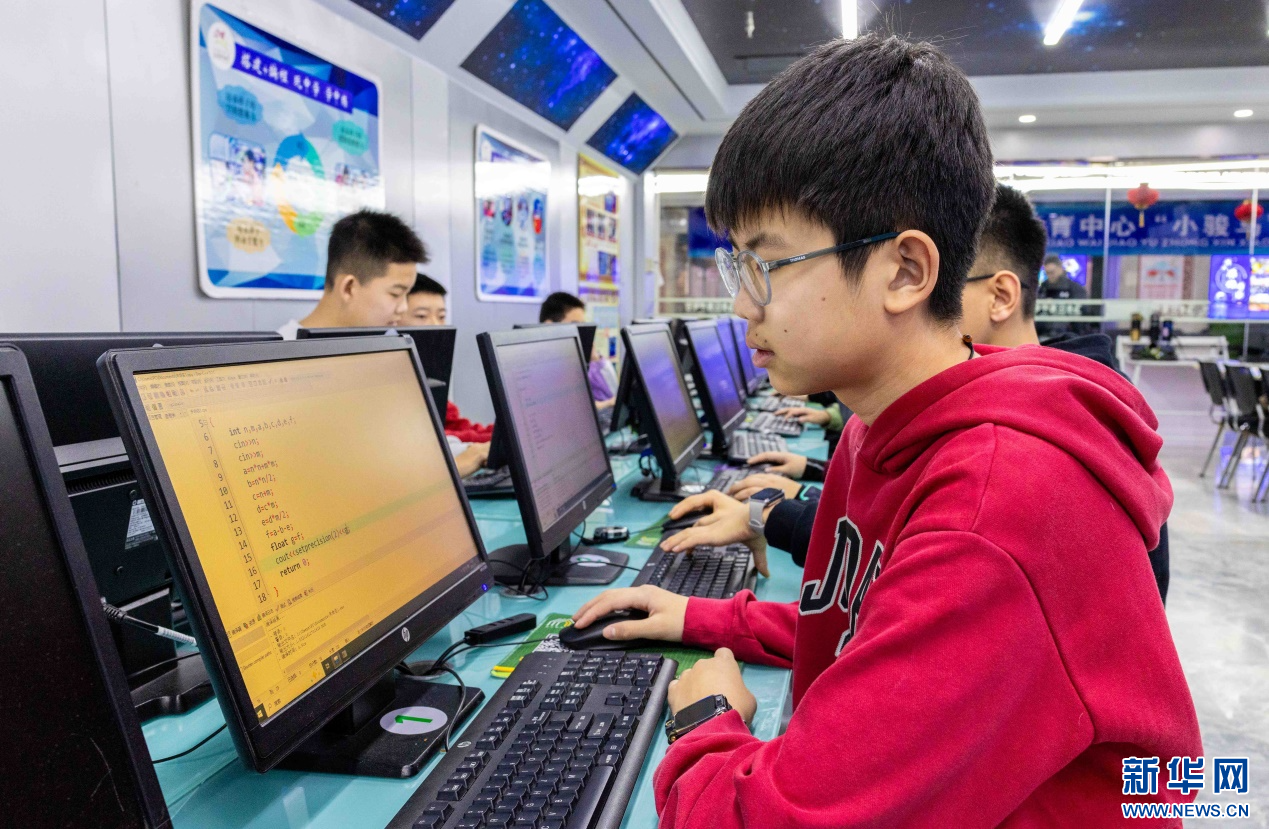 1月22日,孩子们在呼和浩特市玉泉区青少年宫学习机器人编程。新华网发(丁根厚 摄)