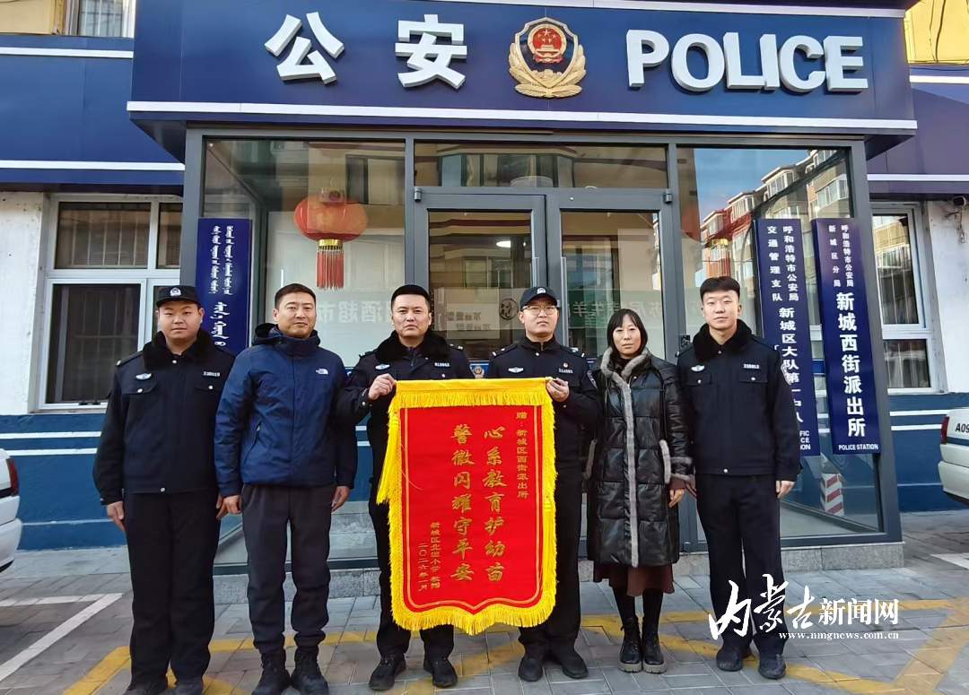 本网讯(草原云·内蒙古新闻网记者 郑慧英)近日,呼和浩特市新城区北垣小学负责人带领教师代表,将一面绣有“心系教育护幼苗,警徽闪耀守平安”的锦旗(如图)送到呼和浩特市公安局新城区分局西街派出所,致谢西街派出所长期以来为校园安全筑牢防线的责任与担当。