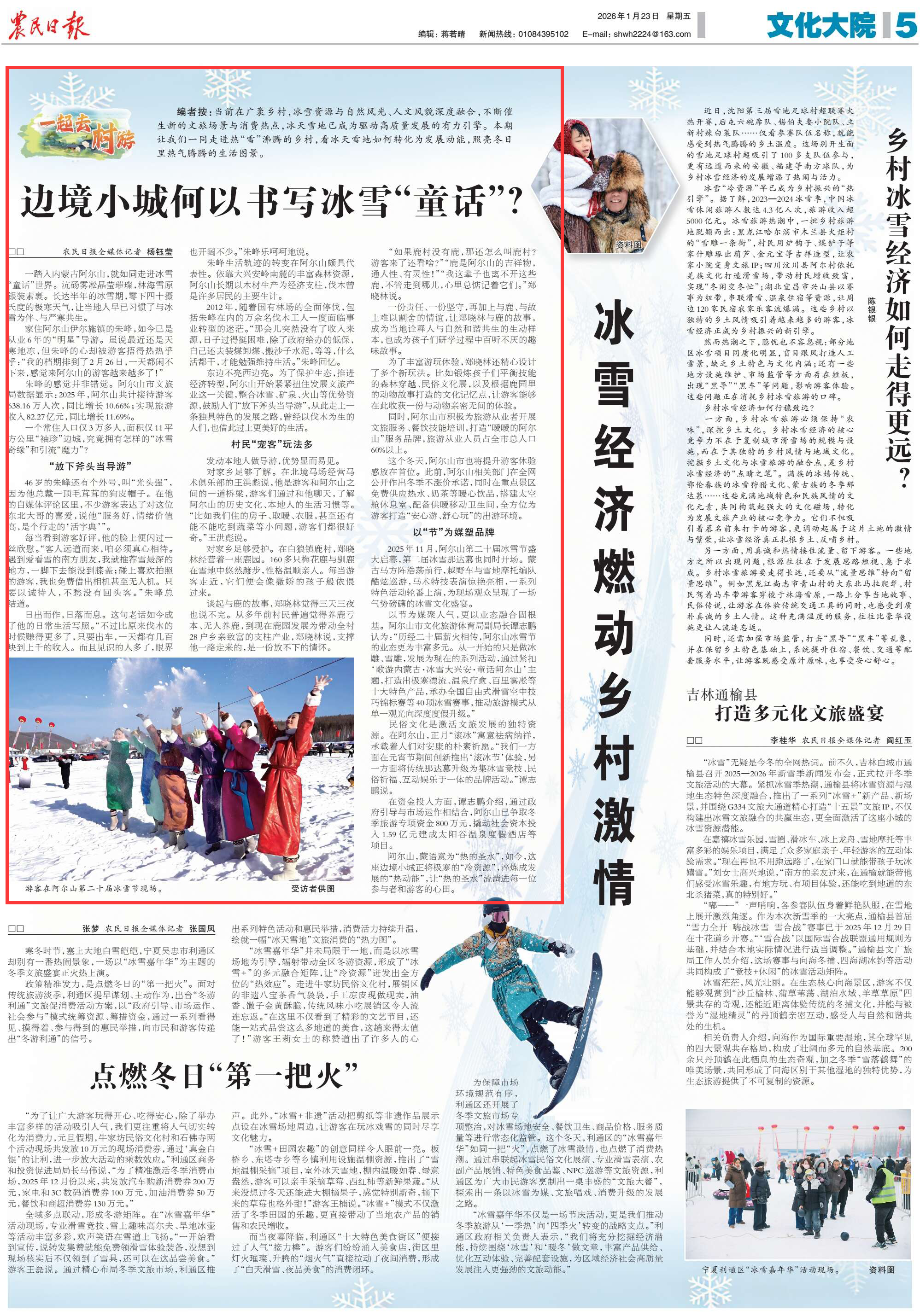2026年1月23日,《农民日报》第5版刊发题为《边境小城何以书写冰雪“童话”?》的文章,报道了2025年,阿尔山共计接待游客638.16万人次,同比增长10.66%;实现旅游收入82.27亿元,同比增长11.69%。一个常住人口仅3万多人,面积仅11平方公里“袖珍”边城,究竟拥有怎样的“冰雪奇缘”和引流“魔力”?