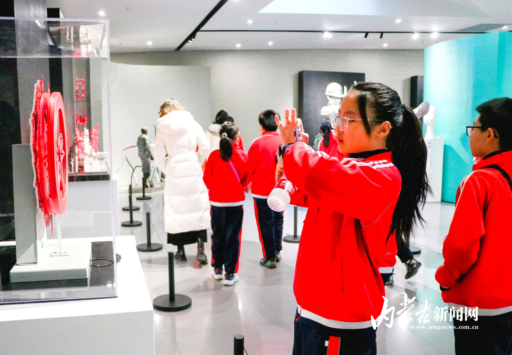 活动现场,赛罕区巨华小学46名师生与家长的研学团在众多雕塑作品前驻足欣赏。“作品能让孩子们走出课本,接触不一样的艺术表达。”巨华小学邹淑英老师说,这是很好的美育课堂,让课本上的知识鲜活起来。