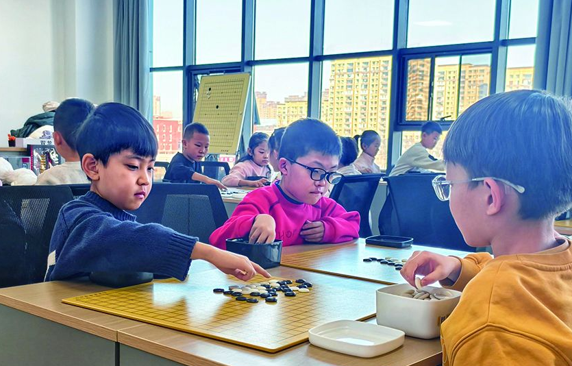 当银发族享受晚年时光的同时,孩子们也在社区找到了属于自己的快乐天地。1月23日,锦泰社区3楼活动室内正在进行公益围棋课。孩子们手执黑白棋子,时而沉思落子,时而果断出击,在方寸棋盘间锻炼思维、培养耐心。“学围棋就像做‘脑体操’,不仅能提升专注力,还能让孩子学会冷静分析问题。”家长杨日丽看着正在下棋的孩子,满脸欣慰。