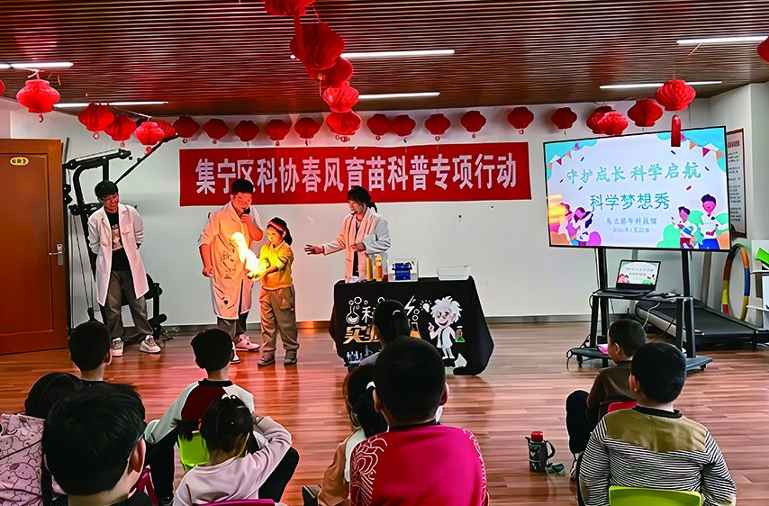 为进一步普及科学知识、助力青少年健康成长,近日,乌兰察布科技馆联合集宁区科协、前进路街道,在集宁区为民社区举办“守护成长 科学启航——春风育苗行动”主题科普活动。来自为民社区托育班的孩子在趣味十足的科学体验中探索科学奥秘,收获知识与乐趣。