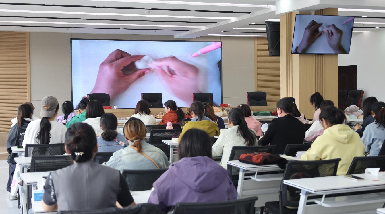 “我以前从未做过手工,但老师手把手认真教学,从简单款式入手,逐步过渡到复杂成品,制作的产品越来越精致。现在不仅学到了一门手艺,还能额外增收,完全不耽误接送孩子。”辖区宝妈翁美丽作为培训项目的受益者,言语间满是喜悦。如今,像翁美丽这样的学员不在少数,她们利用碎片化时间居家制作,既不耽误照顾家庭,又能通过制作文创产品获得可观收入,真正实现了“背着娃、绣着花,养活自己又养家”,有效化解了就业与家庭的矛盾,大幅提升了妇女群体的成就感和幸福感。