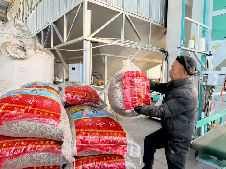 在提升葵花籽品质的同时,葵花色选厂还串联起就业、增收与产业链的提质扩容。“我家就在周边村里。每年10月色选厂迎来生产旺季,我们来这里按绩效拿工资,一个月能挣八九千块钱。就算到了淡季,每月也能有四五千块钱的收入,让我们的生活有了稳稳的保障。”葵花色选厂管理人员马颜珍说。