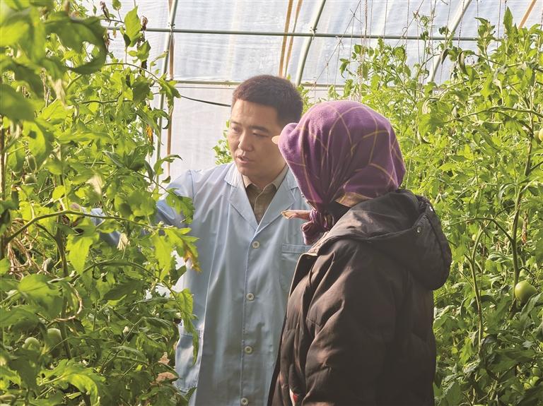 种植技术是设施农业提质增效的关键所在。在实验大棚内,盟农业技术推广中心副主任白雪原细致察看秧苗长势,一边认真记录各项数据,一边与种植户交流管护要点。