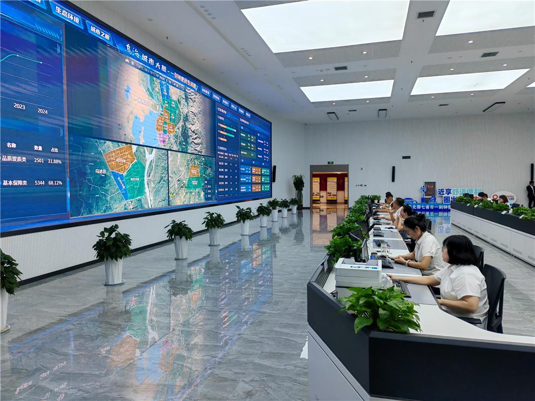 在市数字化城市运行和治理中心,“城市大脑”24小时实时运转,数万条信息在显示屏上滚动更新,各区、各路段、各场所的动态与监控画面一目了然。这一智慧中枢,正是乌海市以数字化驱动城市治理升级的生动缩影。