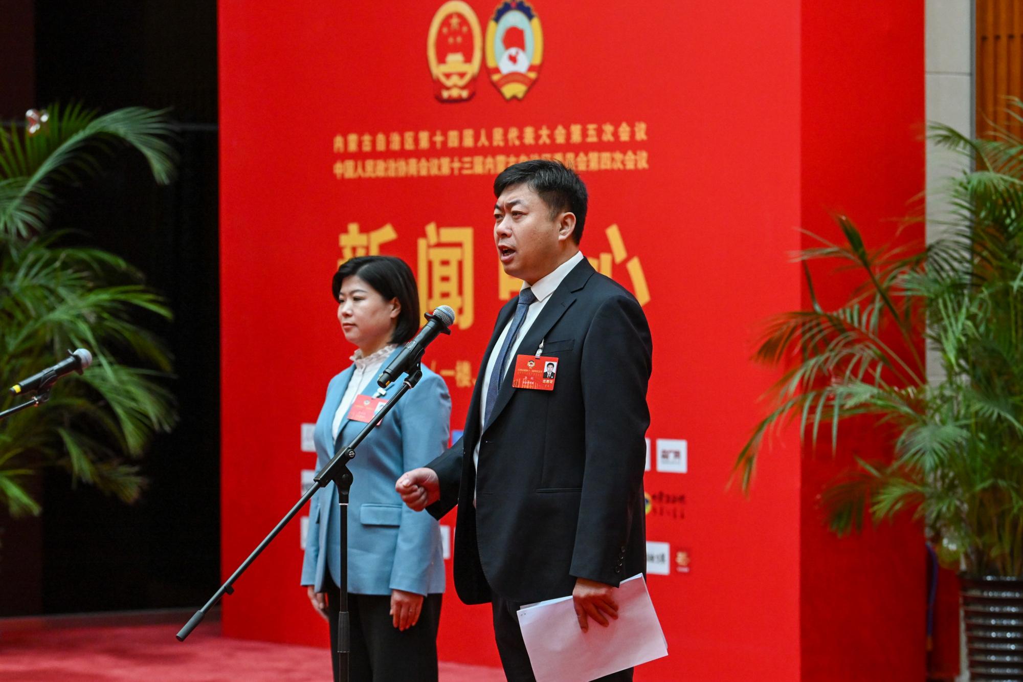 内蒙古日报•草原云记者现场提问。草原云记者 王磊 摄