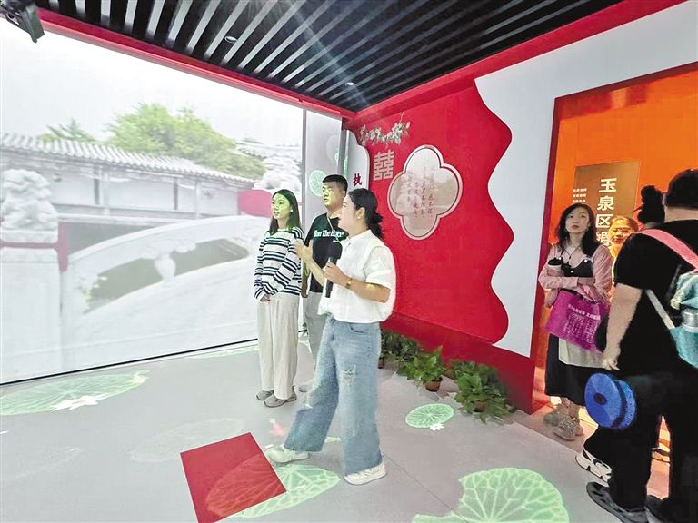 新人参观呼和浩特市玉泉区婚俗博物馆。