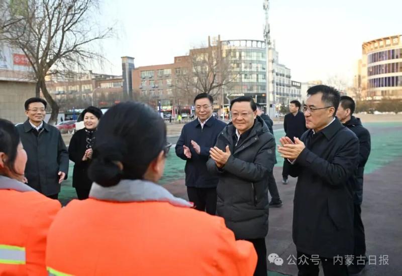 春节将至,首府的街头张灯结彩,处处洋溢着喜庆祥和的节日氛围。王伟中一行首先来到赛罕区一中队交警执勤岗点,亲切慰问正在执勤的民警,送上新春美好祝福,感谢大家的默默坚守和无私付出。王伟中叮嘱大家注意防寒保暖,以良好状态守护城市平安畅通。在万正广场环卫站,王伟中一行看望慰问辛勤工作的环卫工人。王伟中说,你们是城市的“美容师”,每天起早贪黑、风雨无阻,用辛勤劳动换来了城市的清洁美丽,大家辛苦了。有关部门要多关心他们的工作和生活,细化关爱举措,健全保障机制,在全社会营造尊重环卫工人、珍爱生活环境的良好氛围。随后,王伟中一行来到呼和浩特火车东站,仔细询问春运期间人流车流、安全保障等情况。王伟中强调要精准把握春节群众出行规律,加强运力调配、客流疏导和秩序维护,深入排查整治安全隐患,切实提升服务质量,让群众出行更安全、更舒心。