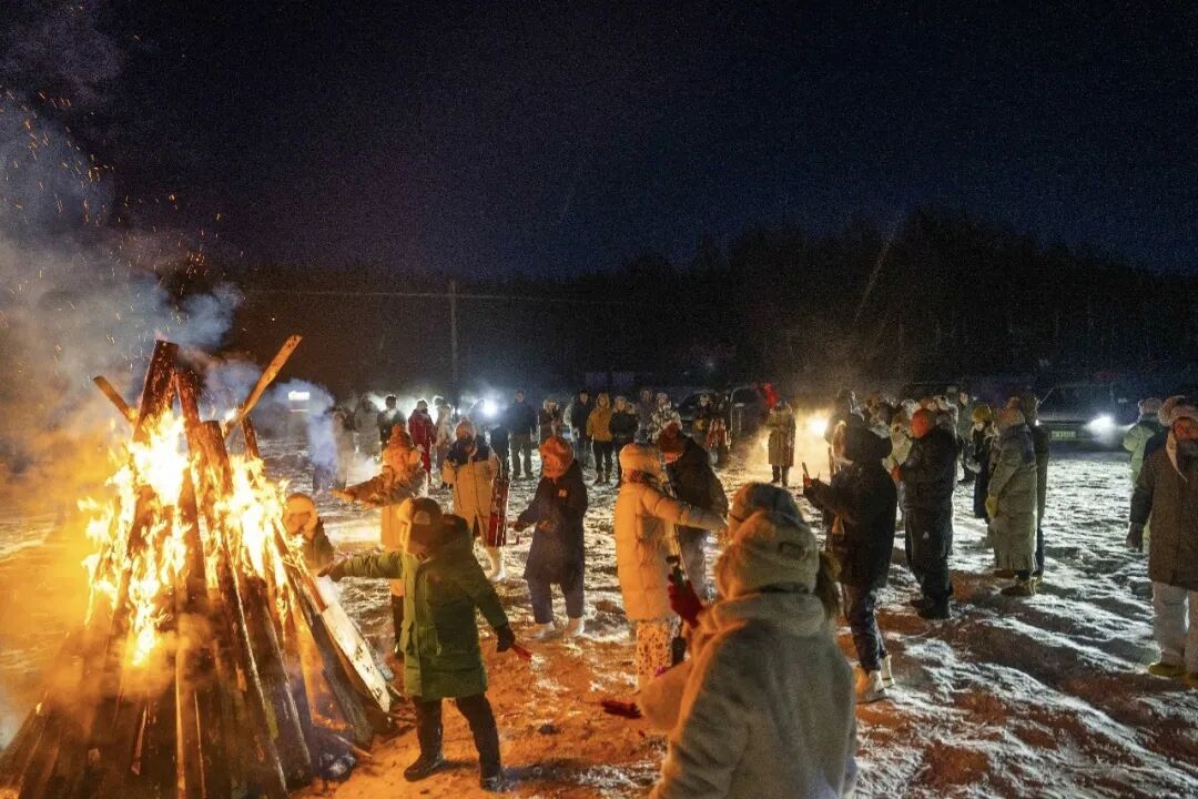 热力mall城市餐厅里,包饺子大赛热闹非凡,直径1米的巨型“百财”饺子格外吸睛,藏有滑雪场门票、温泉体验券的“福气盲盒饺子”,让大家在品尝美味的同时收获惊喜。泰康艺术中心内,自由舞会、啤酒趣味挑战赛、听曲识歌挑战赛、幸运大转盘轮番上阵,欢乐氛围持续到深夜。哈伦(阿尔山)滑雪场中,3米高的“红包树”耀眼夺目,冰雪盲盒墙前游人络绎不绝,憨态可掬的“阿尔鹿”随机派送礼物,引得大家争相互动、沾福纳喜。森林牧场里,五畜祈福仪式庄重祥和,寄托着人们对新一年的美好期盼;夜幕降临,篝火晚会、雪地蹦迪、璀璨烟花接连上演,让阿尔山的夜晚更添热烈与活力。