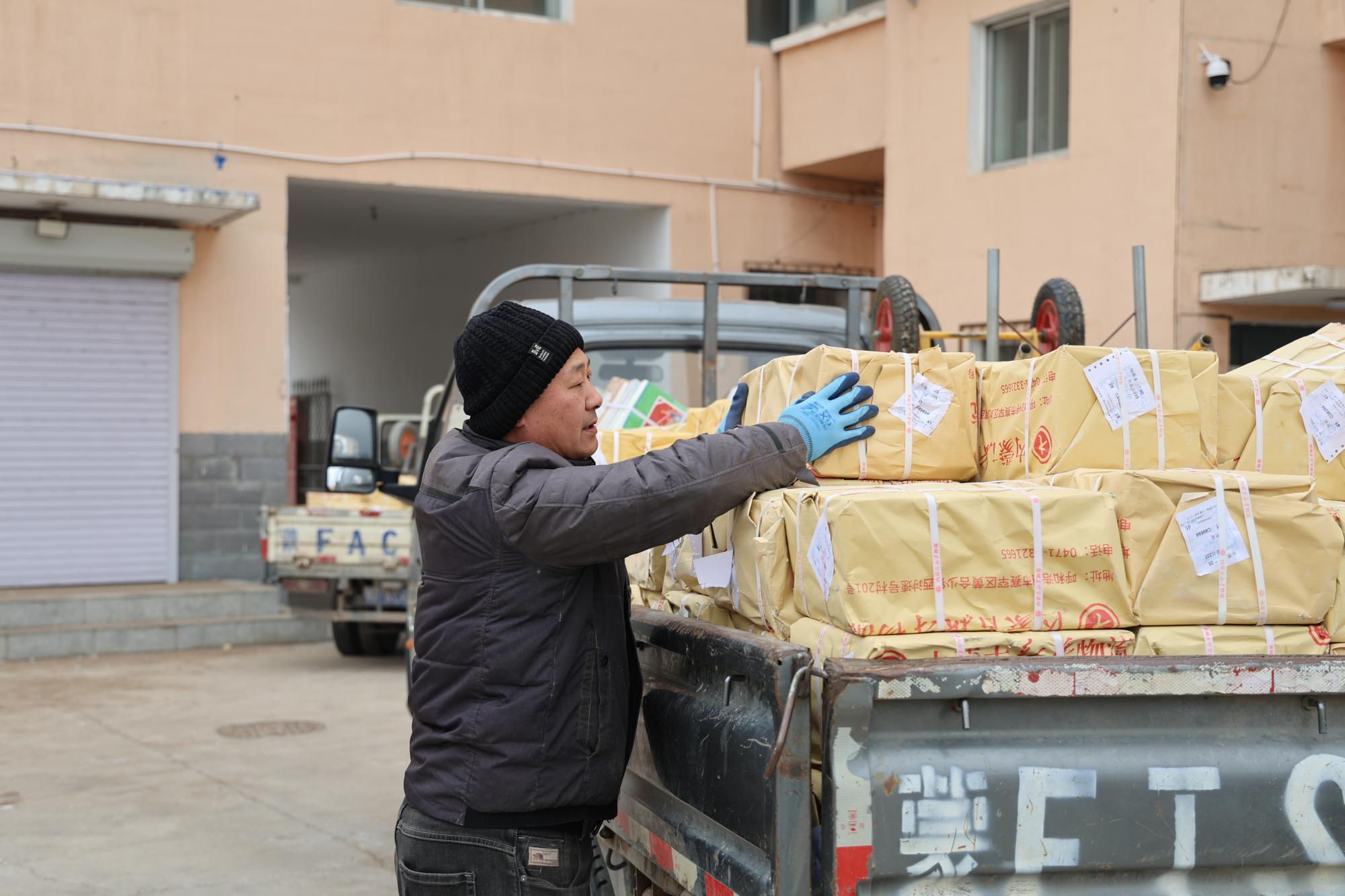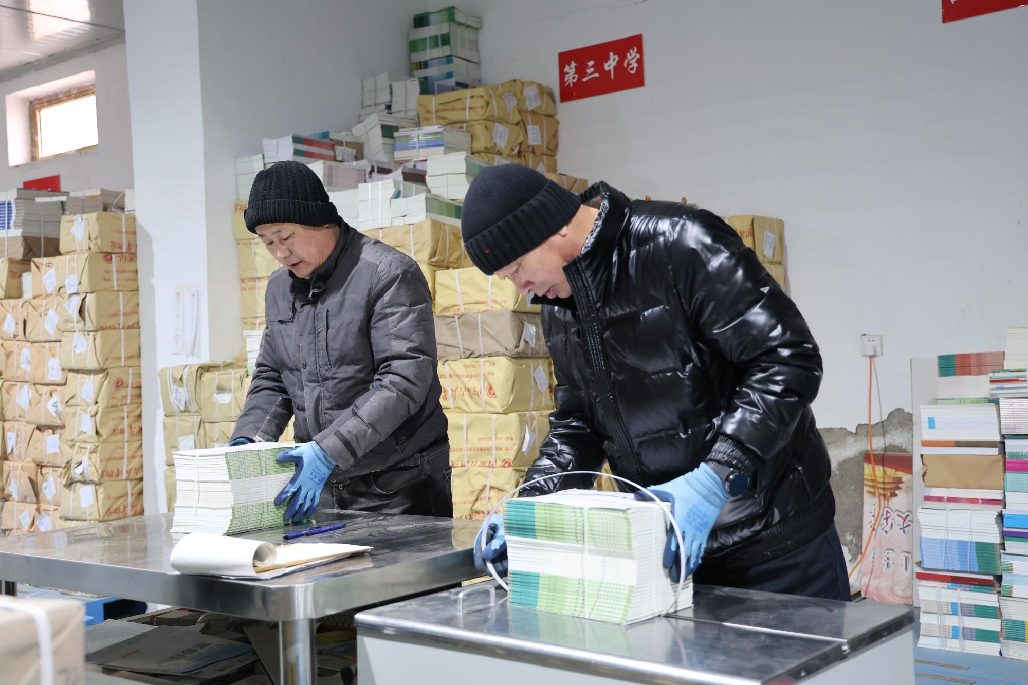 2月25日,在兴安盟突泉县新华书店仓库,各类教材按照不同学校、年级、科目整齐摆放,员工们分工明确,忙碌而有序核对领发书单、清点包件、安排装运,整个教材发放流程高效运转。