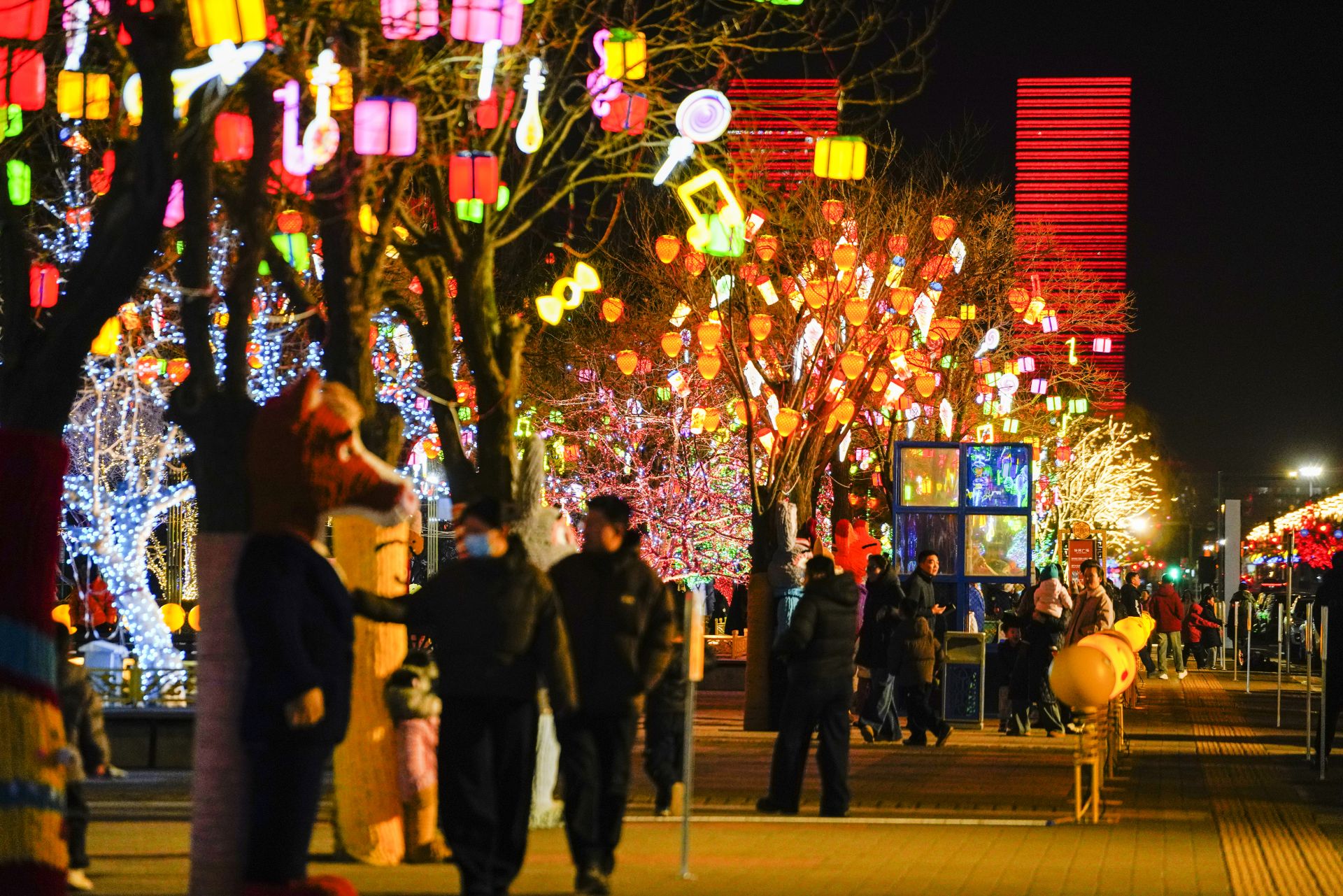鄂尔多斯市康巴什区张灯结彩,市民游客在光影盛宴中感受浓浓年味儿。张鑫 摄