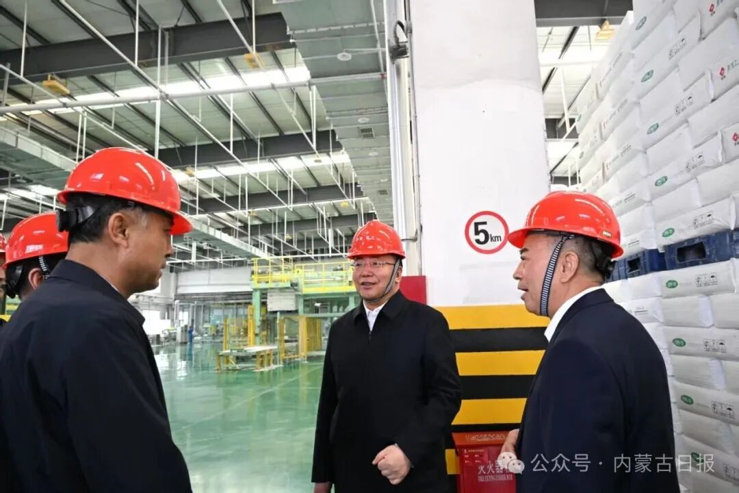 4月13日,包钢在阿拉善高新区中盐内蒙古化工股份有限公司了解精细化工产品生产情况。草原云·内蒙古新闻网记者 韩卿立 摄