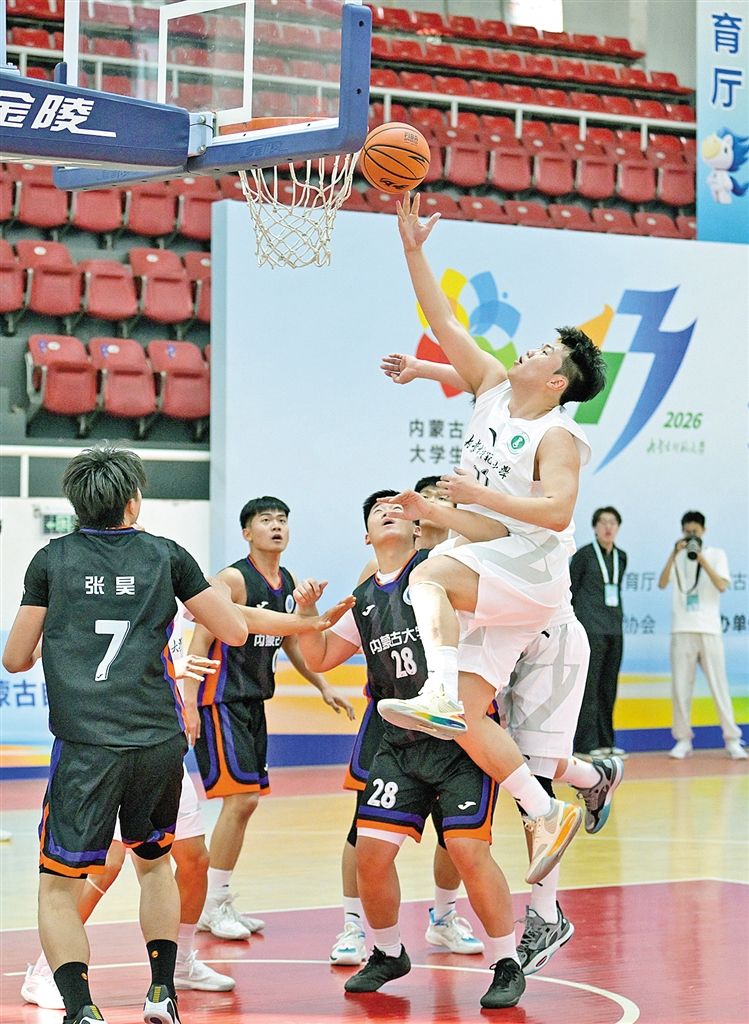 跃动青春、燃情赛场,在内蒙古自治区第十三届大学生运动会篮球项目比赛中,千余名怀揣篮球梦想的少年意气风发奔赴赛场,在一次次奋力奔跑、高高跳跃间挥洒汗水、追逐荣光,尽情绽放耀眼夺目的青春光芒。草原云·内蒙古新闻网记者 王磊 摄