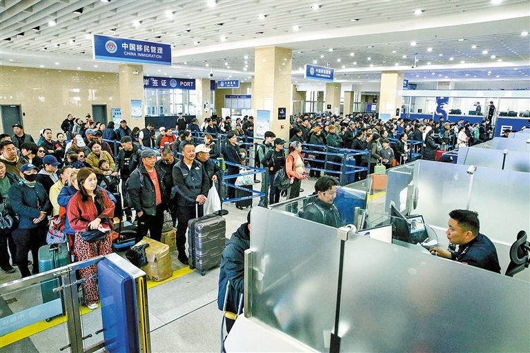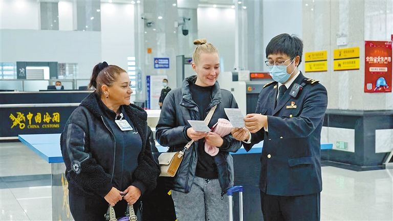 满洲里海关所属满洲里十八里海关关员优化通关服务,保障进出境旅客顺畅通关。张丽萍 摄