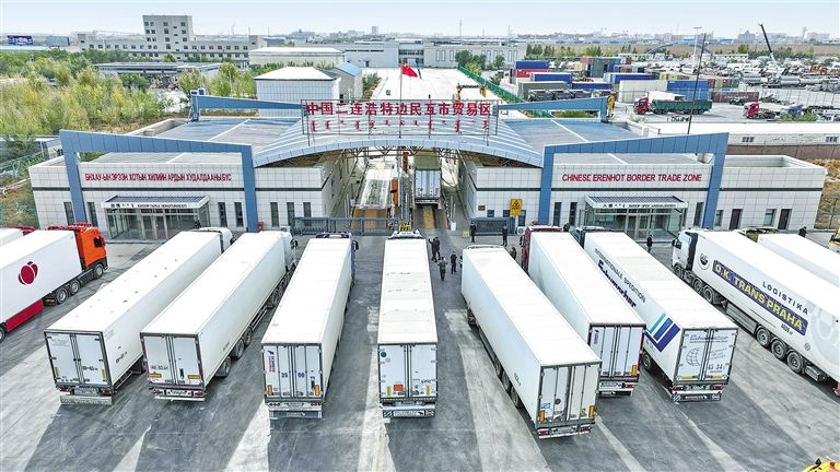 清晨的满洲里铁路口岸,一列中欧班列鸣笛启程,穿越广袤腹地驶向俄罗斯及欧洲多国;千里之外的二连浩特公路口岸,满载果蔬、建材的货车有序通关出境,一派繁忙景象。