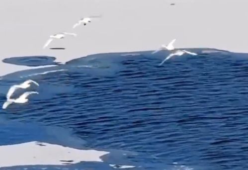 冰雪初融 白羽翩跹 乌梁素海现新春盛景