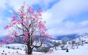 四川雅安:百年光叶玉兰迎雪绽放