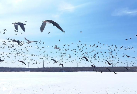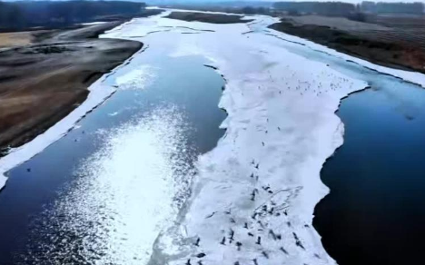 内蒙古草原上最大一块“蓝冰”呼伦湖渐次开化