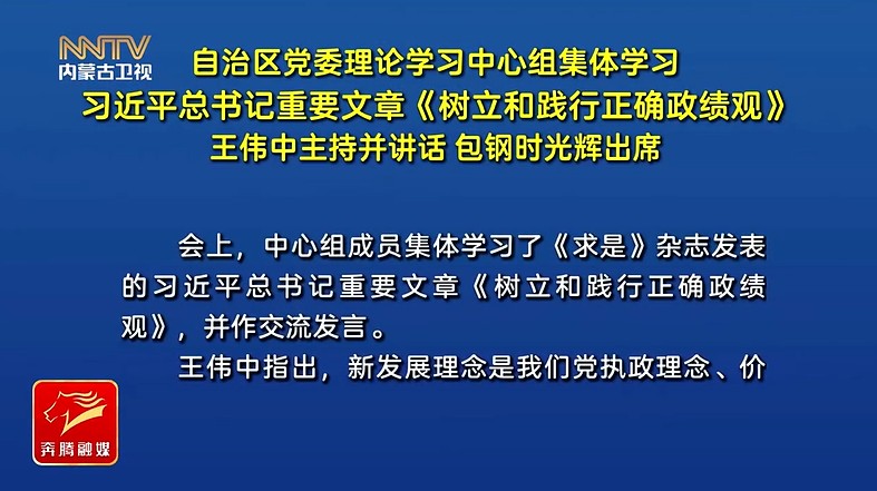 自治区党委理论学习中心组集体学习习近平总书记重要文章《树立和践行正确政绩观》 王伟中主持并讲话 包钢时光辉出席