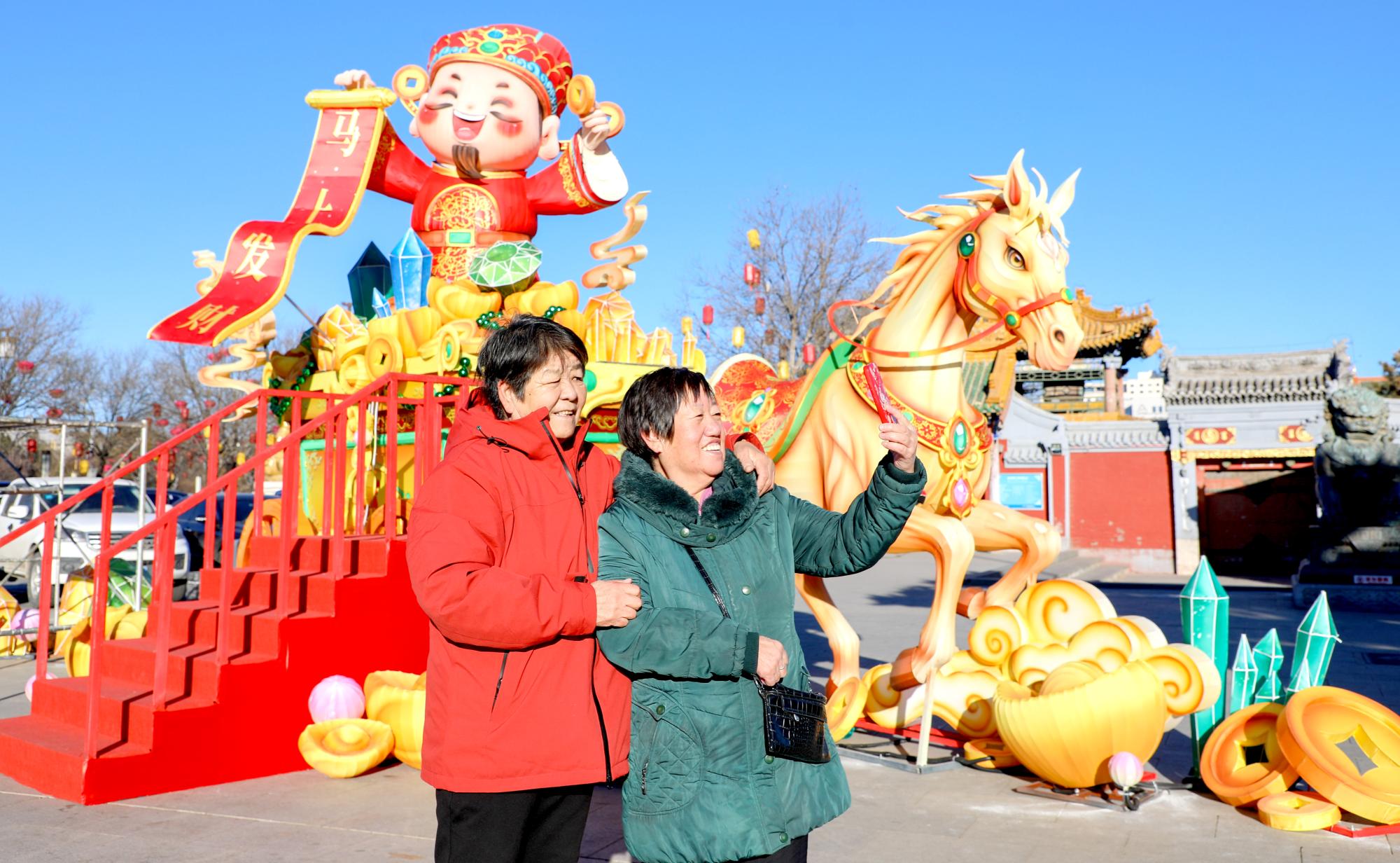 挂起喜庆灯笼迎新年