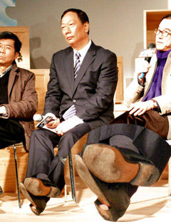 郭台铭参加晚会亮鞋底磨破 显示节俭作风