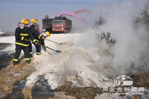 消防官兵在零下20多度的严寒中,冒着呛人的盐酸雾气, 经过5个多小时的艰苦奋战,乌海市公安、消防、交警、安监、环保等各部门发挥专业特长,密切配合,协同作战。11时56分,根据现场消防官兵及技术人员鉴定,险情基本排除,未对周边环境造成污染。(记者赵文萃 通讯员罗兵 冀红英)