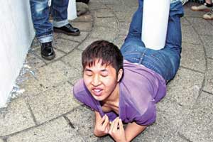 22岁的郑姓参赛者则化身“爆奶如花”,穿上红色短裙加丝袜到场,声称要将尖沙咀变成魅力都会,之后他表演时先狂吻旗杆,然后当众揸爆胸前两个装满类似鲜奶液体的气球,导致奶水四溅,成功营造“爆奶”恶心效果。