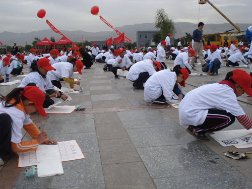 中国首届少儿书法艺术节暨第三届黄河明珠·中国乌海书法艺术节是我市书法城魅力的一次隆重展示。艺术节上,乌海把舞台延展到了全国范围。艺术节上,全国书法作品展开展仪式暨全市万名青少年书法大赛、第二届乌海·中国书法城论坛、中国首届少儿书法艺术节暨第三届黄河明珠·中国乌海书法艺术节开幕式、百名中国书协会员现场书写《中国书法城颂》长卷、各民族少儿共书“爱祖国”大型表演、“唱响乌海一支歌”全市歌手大赛、全市群众性优秀节目大赛等11项大型集中活动无一不是精彩的大手笔。其中,各民族少儿用红灯笼拼成的“爱祖国”大型表演活动征服了上海大世界基尼斯纪录。