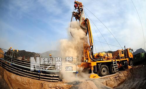 3月3日,兰州军区宁夏给水团的三号钻机正在进行打孔救援。