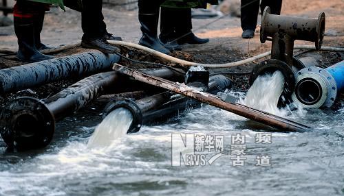 3月3日,几台水泵正在向外排水。新华社记者任军川摄