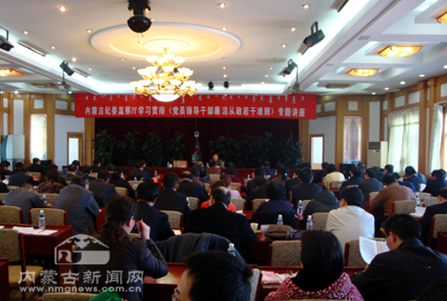 3月5日上午,内蒙古纪委监察厅举行学习贯彻《党员领导干部廉洁从政若干准则》专题讲座。