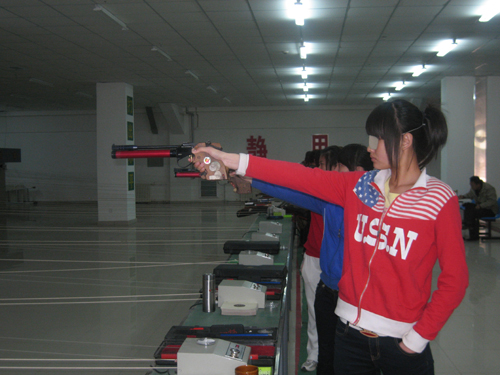 记者走进射击训练馆时,队员们正在全神贯注地进行射击测试。据教练王荇介绍,近一段时间,除了加强对动作的规范性和一致性的训练外,主要是根据队员个人的技术特点,对弱的方面加以提高;同时为了强化队员的心理承受能力,队内经常组织练习赛,以期从练习赛中发现问题并加以解决。