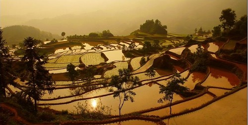 八百年了,整整八百年,云和梯田一头枕着洞宫山脉,一头枕着瓯江的涛声,静静地卧在浙西南莽莽苍苍、一泻千里的绿意中,一年四季云雾相伴、山泉沐浴;年年岁岁花鸟相依、牧歌短笛;朝朝暮暮炊烟袅袅、鸡犬相闻。