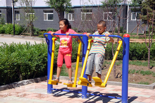 走进赤峰市经济适用住房项目新城区阳光小区,绿树掩映,芳草萋萋,一个个街心花园,被繁茂的绿树遮住,形成了一片片绿色的海洋。在这里,有的居民坐在树下的木凳上,围着石桌下棋、聊天;有的居民在树下的健身器材上锻炼身体;孩子们则在一旁追逐玩耍……