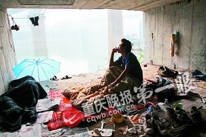 昨日上午10时许,记者根据网帖上的照片,在嘉陵江大桥下方的北滨路桥洞里,找到网帖中的“富二代桥洞哥”。