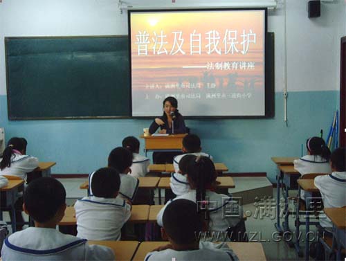 为进一步丰富市司法局创先争优活动,进一步强化学生的法律意识,维护青少年的心理健康,提高学生的自我保护能力,维护学生在校及生活中的人身安全,满洲里市司法局于11月5日下午,由法制课王静老师为市第三小学全体学生讲授了一堂生动的“普法及自我保护”法律知识专题讲座。