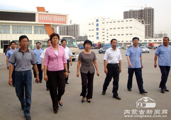 9月2日上午,国家工商总局副局长甘霖(左二)一行在自治区工商局党组书记、局长陈洁(左三)陪同下视察呼和浩特市美通农贸市场。