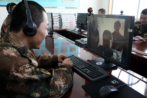 12月11日,新兵通过视频给千里之外的父母报平安。新华社记者邹俭朴摄