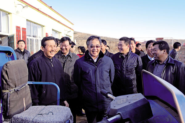 1月31日,自治区党委书记胡春华来到清水河县永兴村村民胡玉根(左一)家,详细了解生产生活情况。(记者 袁永红摄)