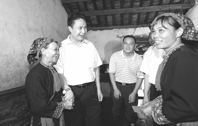 2011年9月27日,罗保铭在琼中黎族苗族自治县长征镇烟园村和苗族农户亲切交谈。宋国强摄