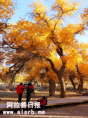 12日至16日,60名记者深入额济纳胡杨林、居延海,阿右旗海森楚鲁怪石城、巴丹吉林沙漠采风。所到之处,他们被千年的胡杨林、古老的居延文化、神奇的巴丹吉林沙漠风光所吸引,纷纷举起手中的镜头,不停地按下快门,记录下这世间少有的美景。《河北日报》记者田瑞夫说:“以前对阿拉善了解很少,总认为这里是威胁京津地区的沙尘暴发源地,没想到这里的局部环境治理得这样美。特别是额济纳黑河水利建设,使千年胡杨林保存完好,沿河生态环境逐步恢复,这真是一项伟大的事业。”
