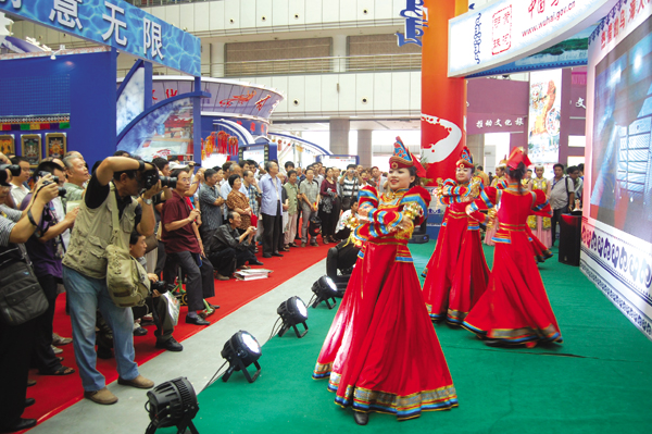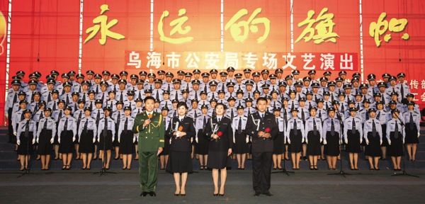 在西部文化产业博览会上,乌海的歌舞表演吸引各方关注。记者于海东摄 公安干警一展歌喉。李濮男摄