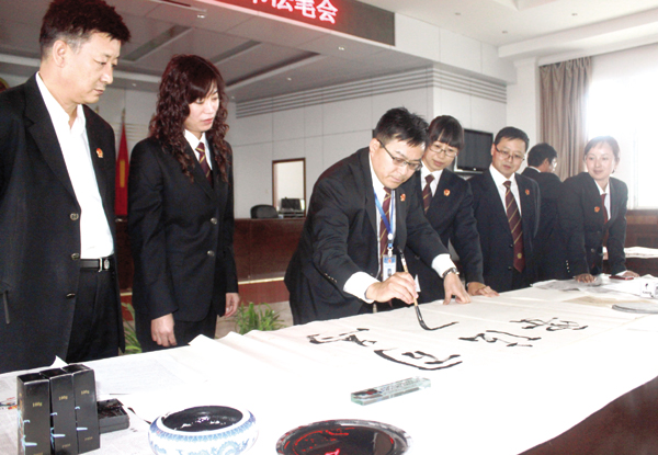 乌海市中级人民法院法官参加书法笔会,健康向上的文化活动成为该院提升法官素质的重要途径。李雪摄
