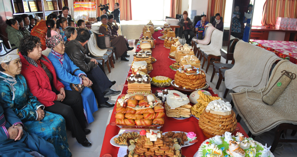 比赛现场,整齐的排放着参赛者用驼毛线衔成的铺毡、门帘、锅套、碗套、装东西用的毡包等“西尔莫勒”,还有居民制作的“乌拉包儿斯克”、“肋条包儿斯克”等美食品,这些美食形状美观,颜色均匀好看。孟和琪琪格大妈说:“做这些包儿斯克用了2个小时,每逢过年家里都会做一些包儿斯克,供亲友品尝。”(见习记者 聂涛)